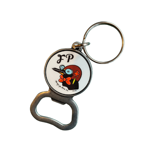 Pop bottles in style with this unique keychain that doubles as a durable metal bottle opener.